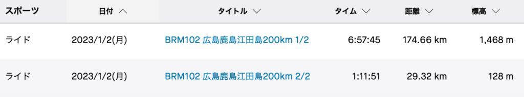 Stravaのログデータです。サイコンの記録をうっかり終了してしまい、2つに分かれてしまいました。標高2000mも獲得しない比較的穏やかなコースです。(獲得標高が距離に対して1%があるかを境にして、山岳コースかを判断することもあるようです。)