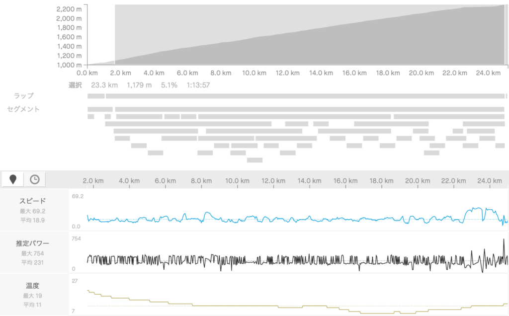 パワーメータは接続出来なかったので推定パワーとなっています。