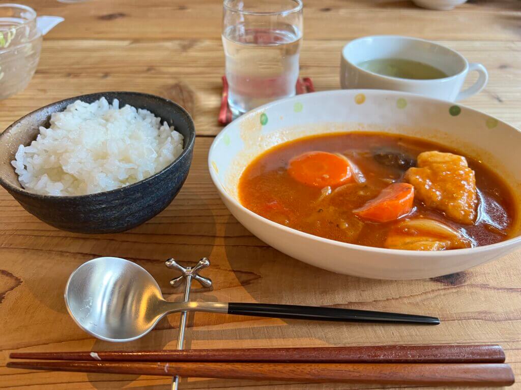 昼食は「まめや食堂」。しばらく放置されていた病院をリフォームして最近開店したとのこと。