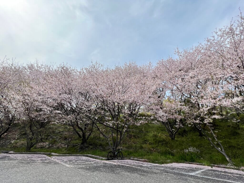 桜が駐車場を囲んでいるので圧巻なのですが、人がいないんですよね。